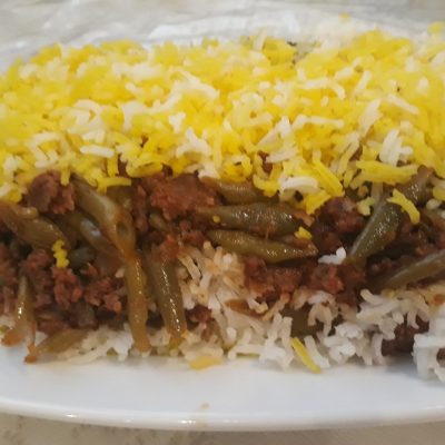 ۲- برنج را با یک پیمانه آب می گذاریم بپزد. برنج نباید زیاد پخته شود. باید کم پخت باشد. می گذاریم سرد شود.